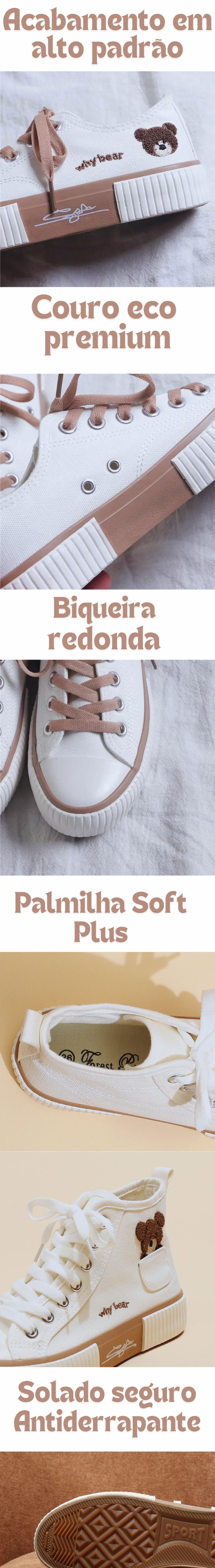 Cada passo seu será como um abraço quentinho e aconchegante de um urso. Nossos tênis foram desenhados para capturar a essência da fofura e proteção que os ursos representam. Imagine caminhar sentindo essa ternura a cada movimento.